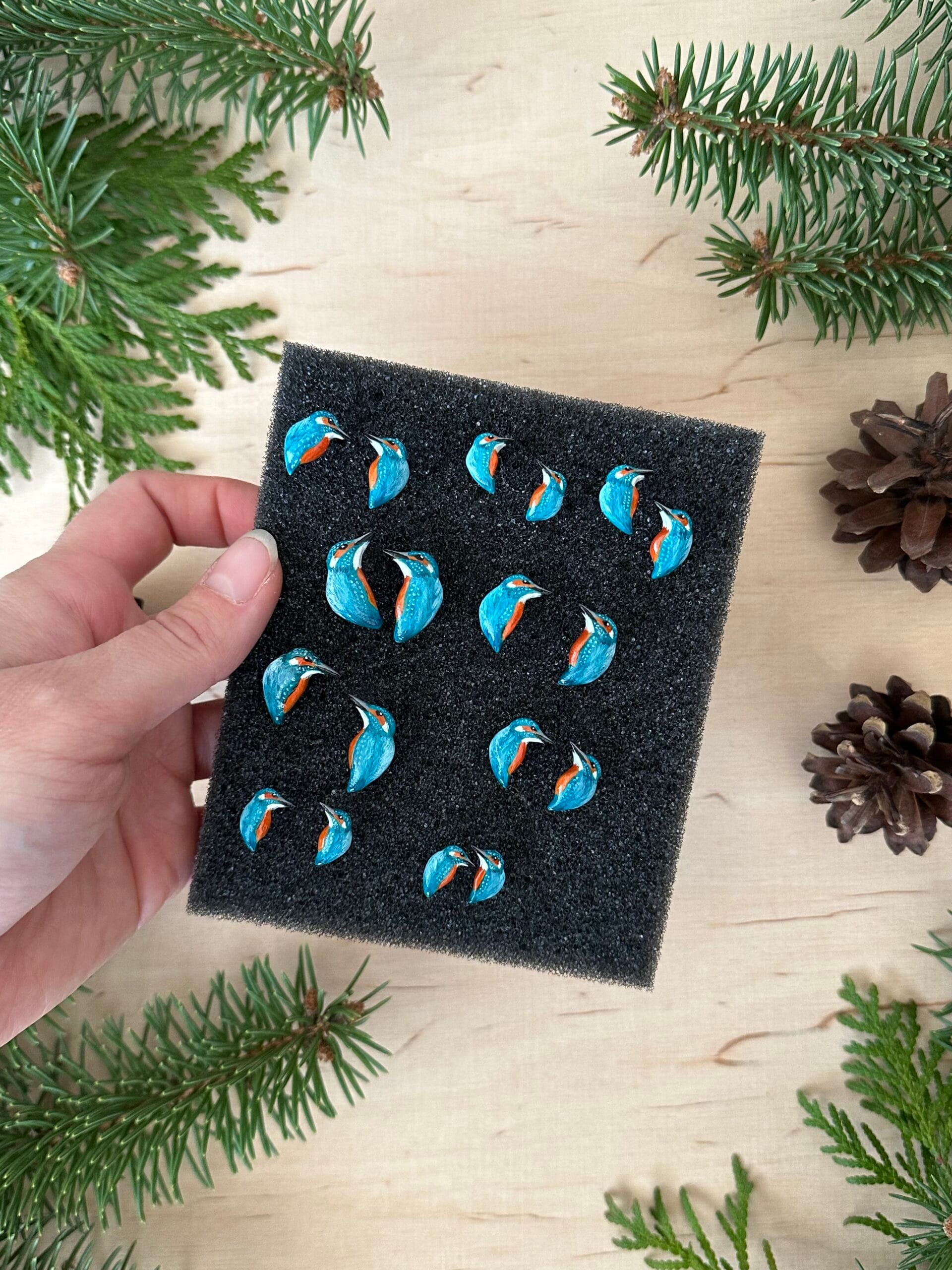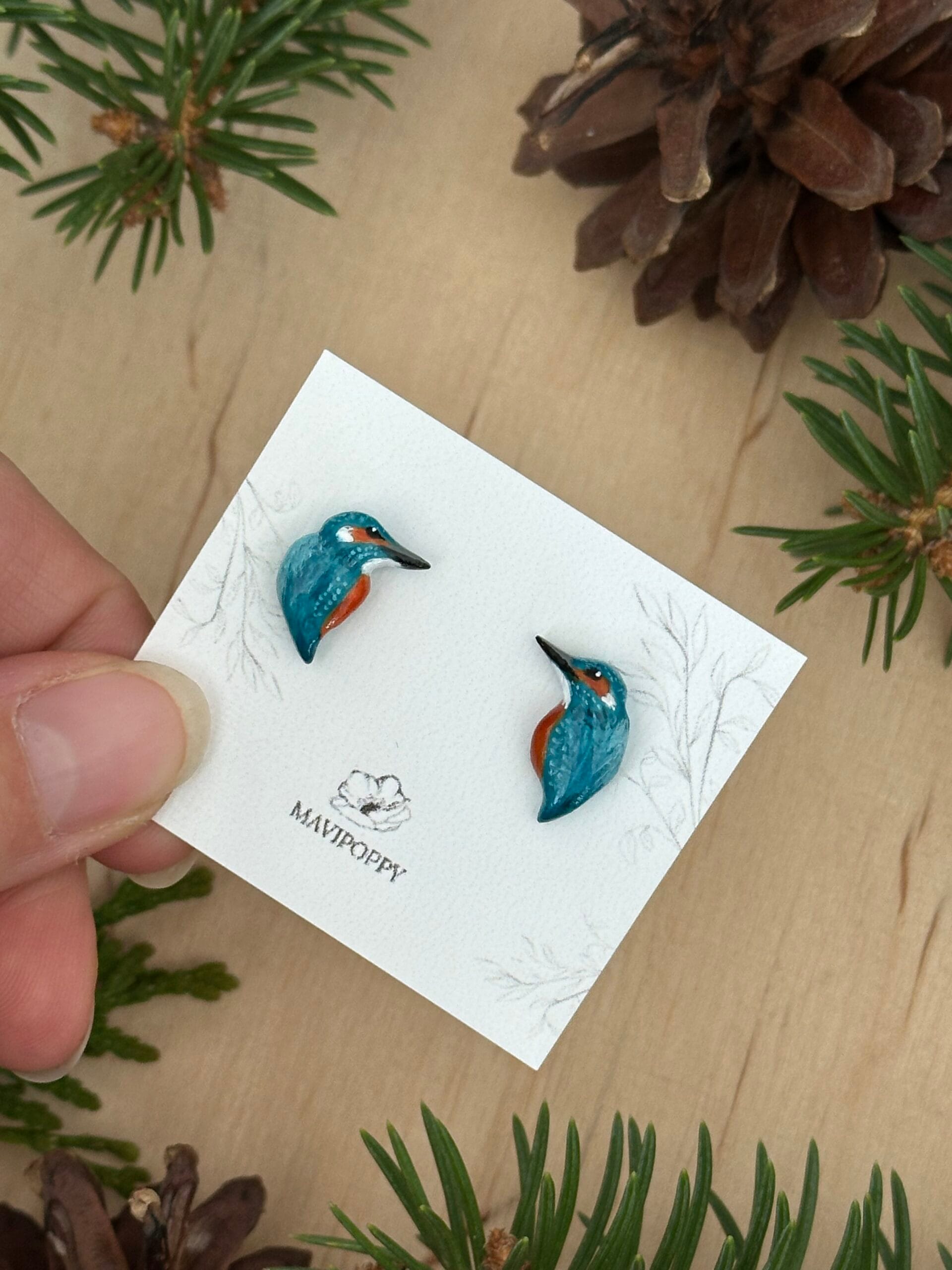 Kolczyki z maskonurem na zamówienie, wielkości średnich zimorodków 🙂