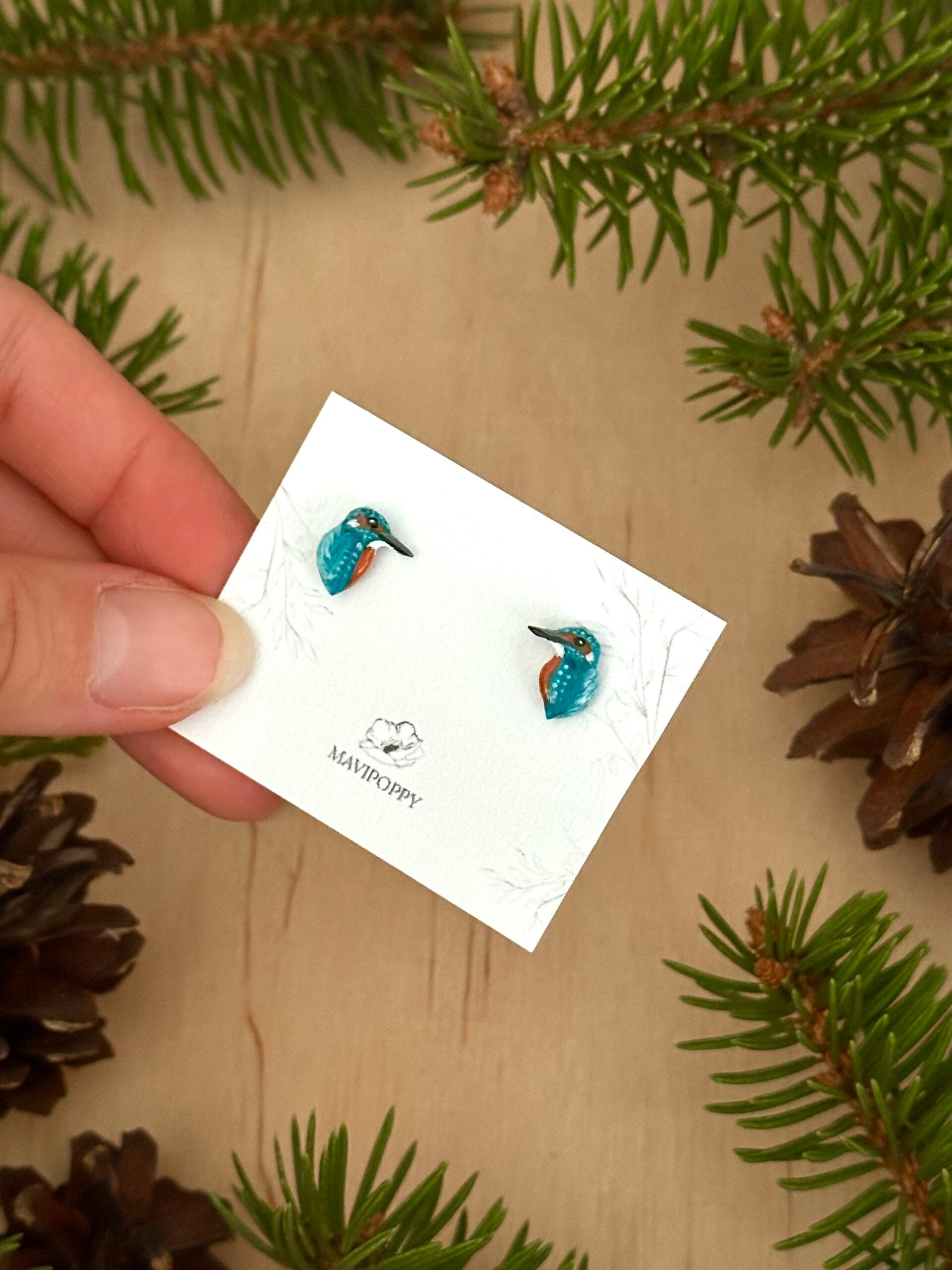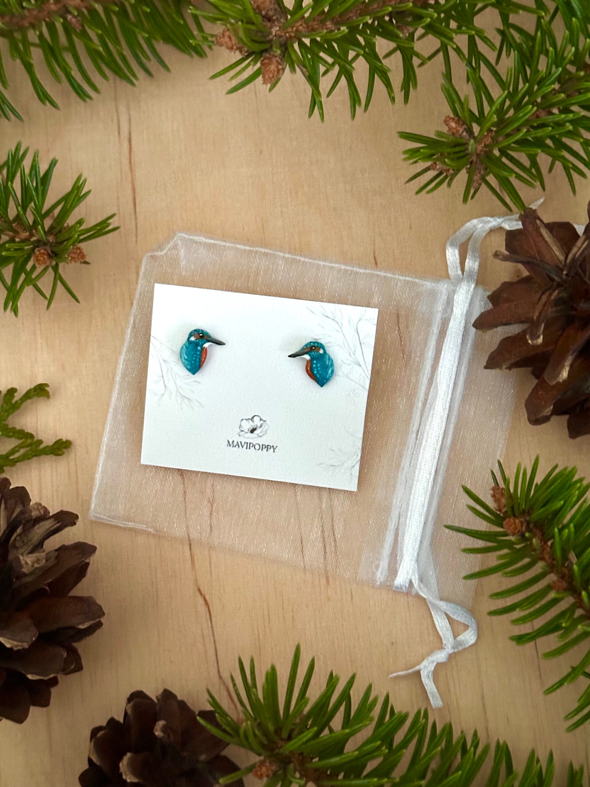 Malutkie, turkusowe kolczyki – zimorodki. Ręcznie wykonane z gliny polimerowej, na sztyfcie ze stali szlachetnej, która się nie odbarwia i nie powoduje reakcji alergicznych.