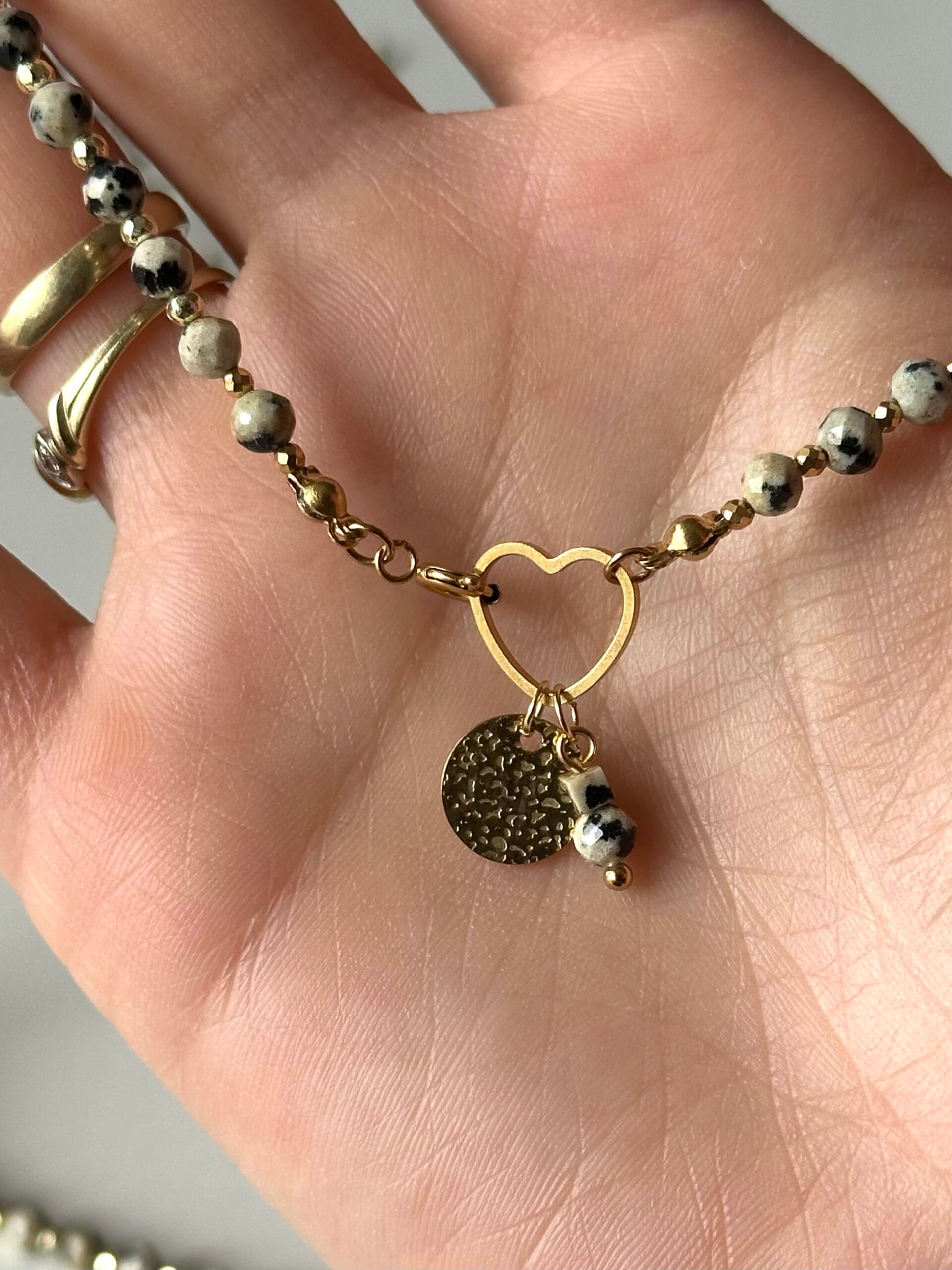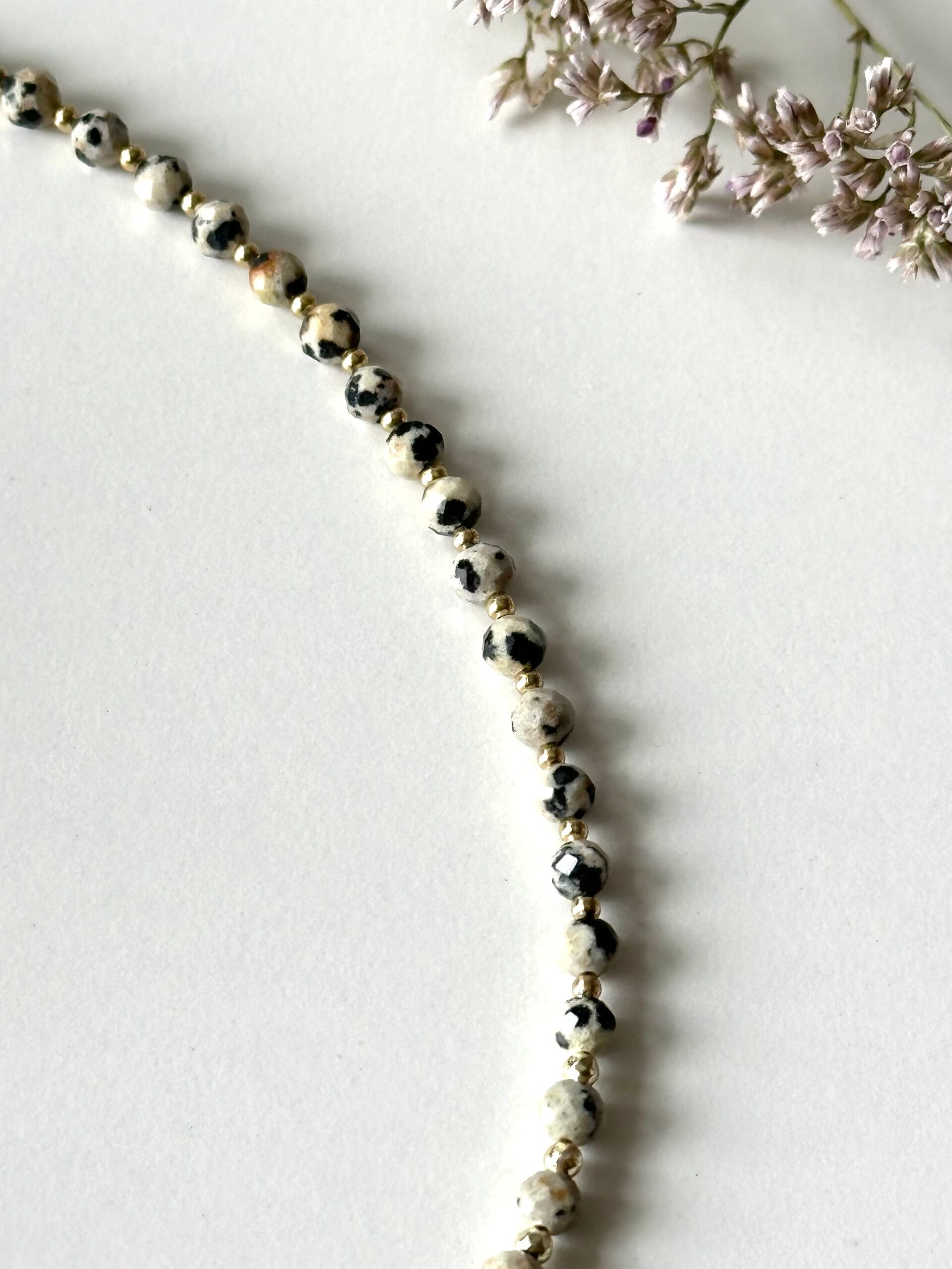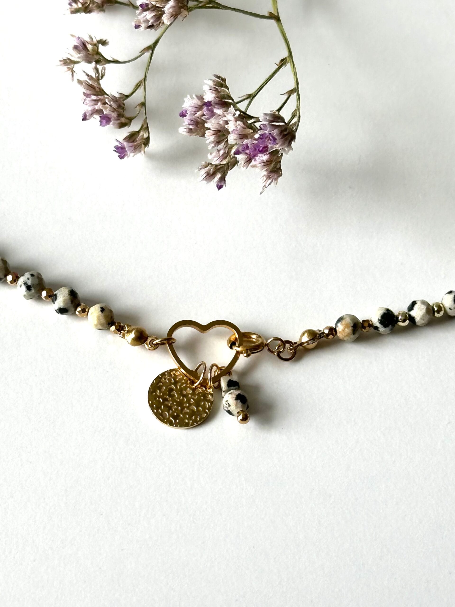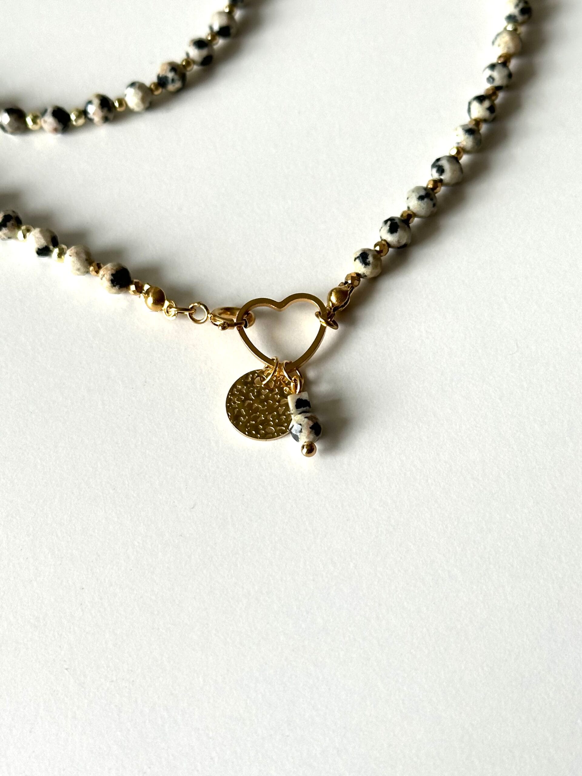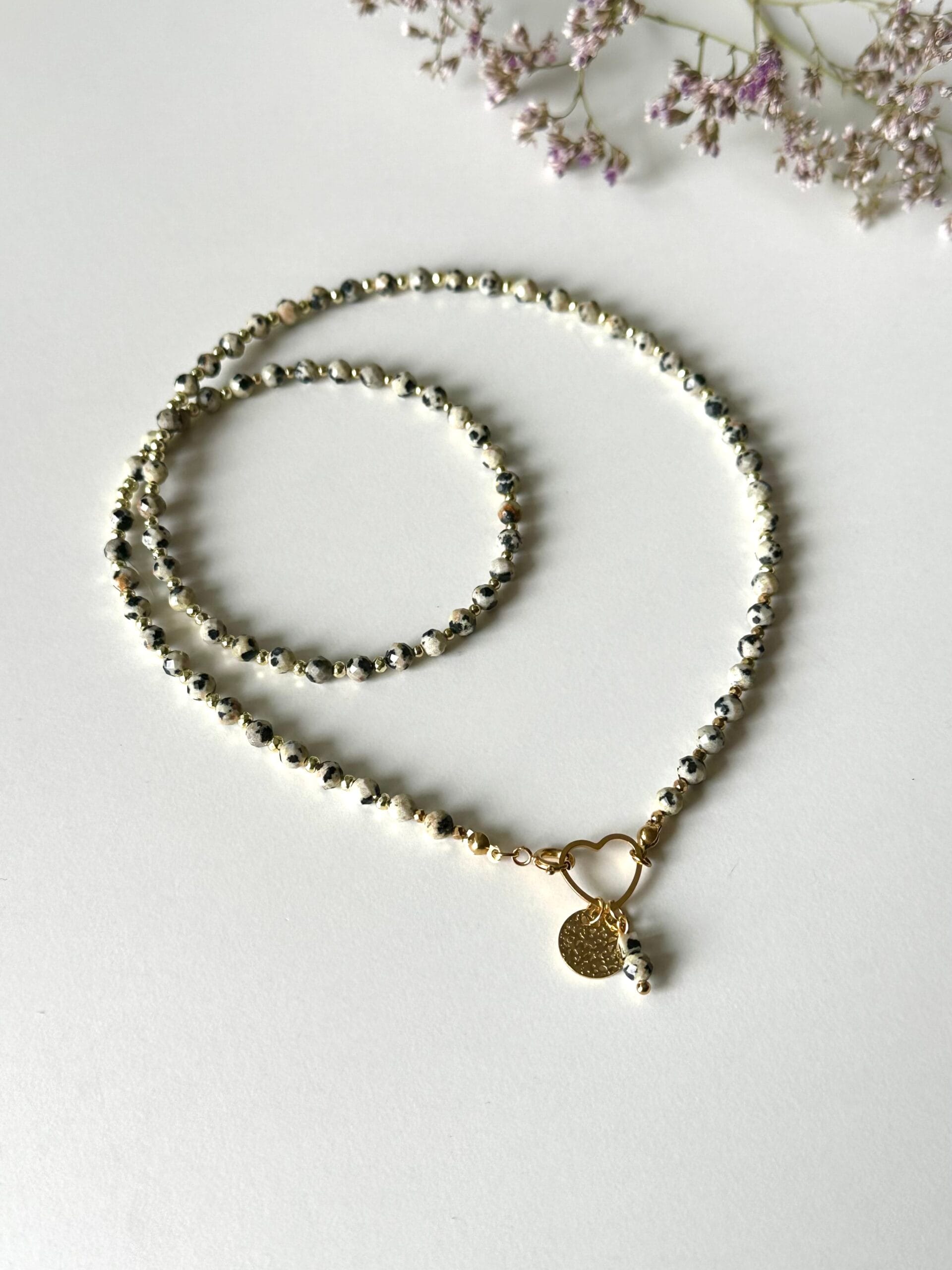 Unikatowy naszyjnik z jaspisu dalmatyńskiego w oprawie ze stali szlachetnej.
