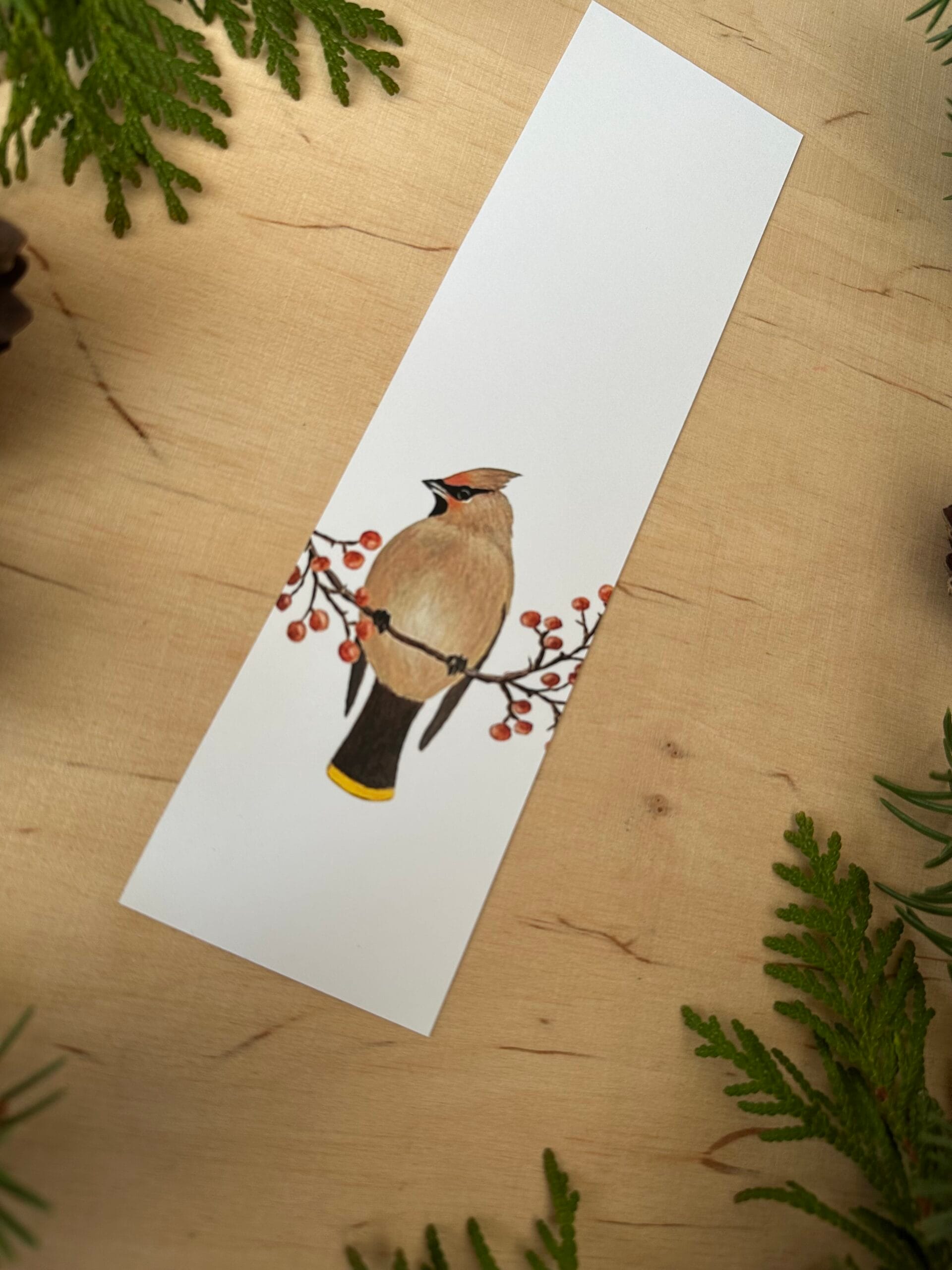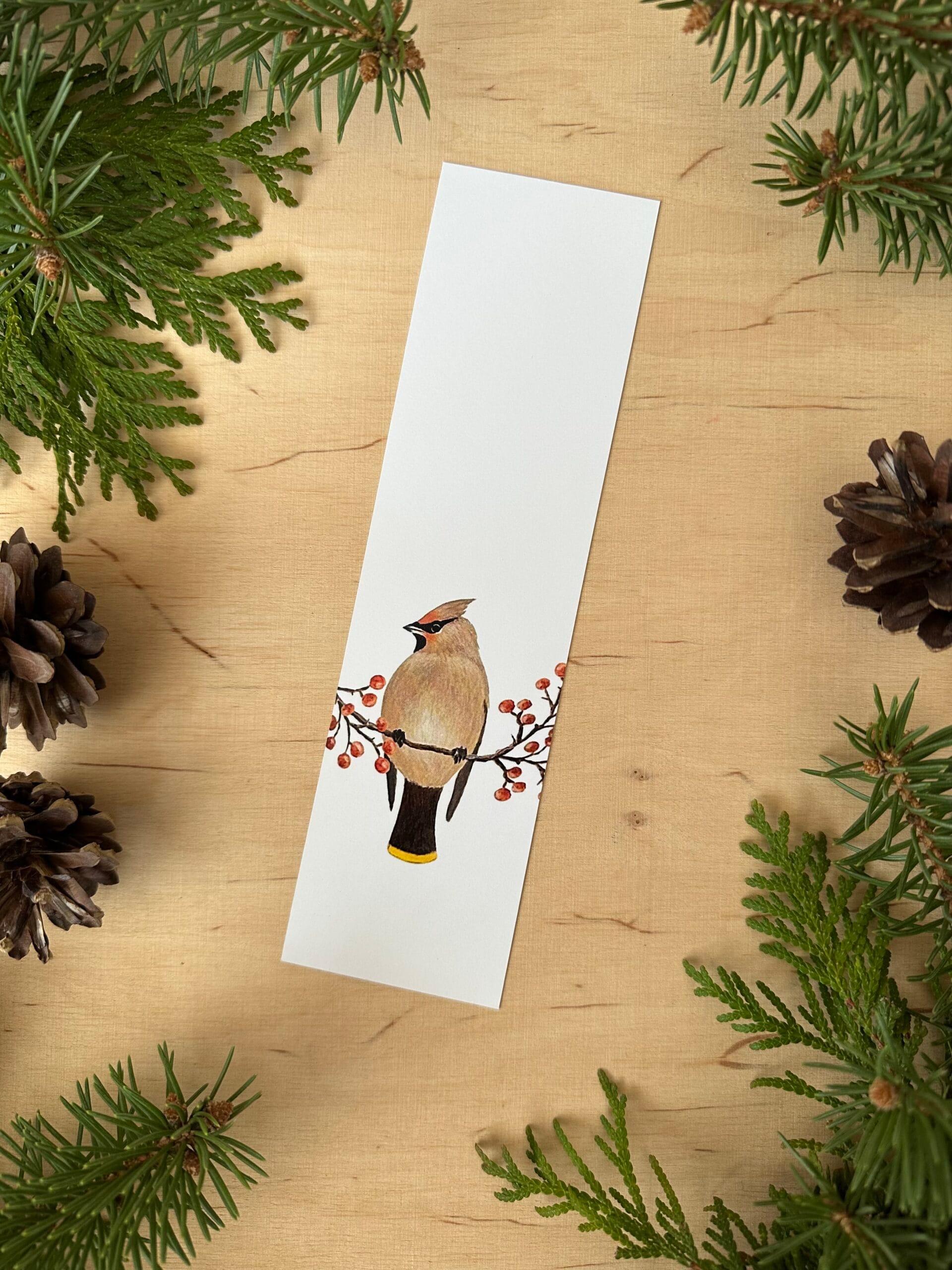 Zakładka z wydrukiem autorskiego malunku jemiołuszki.