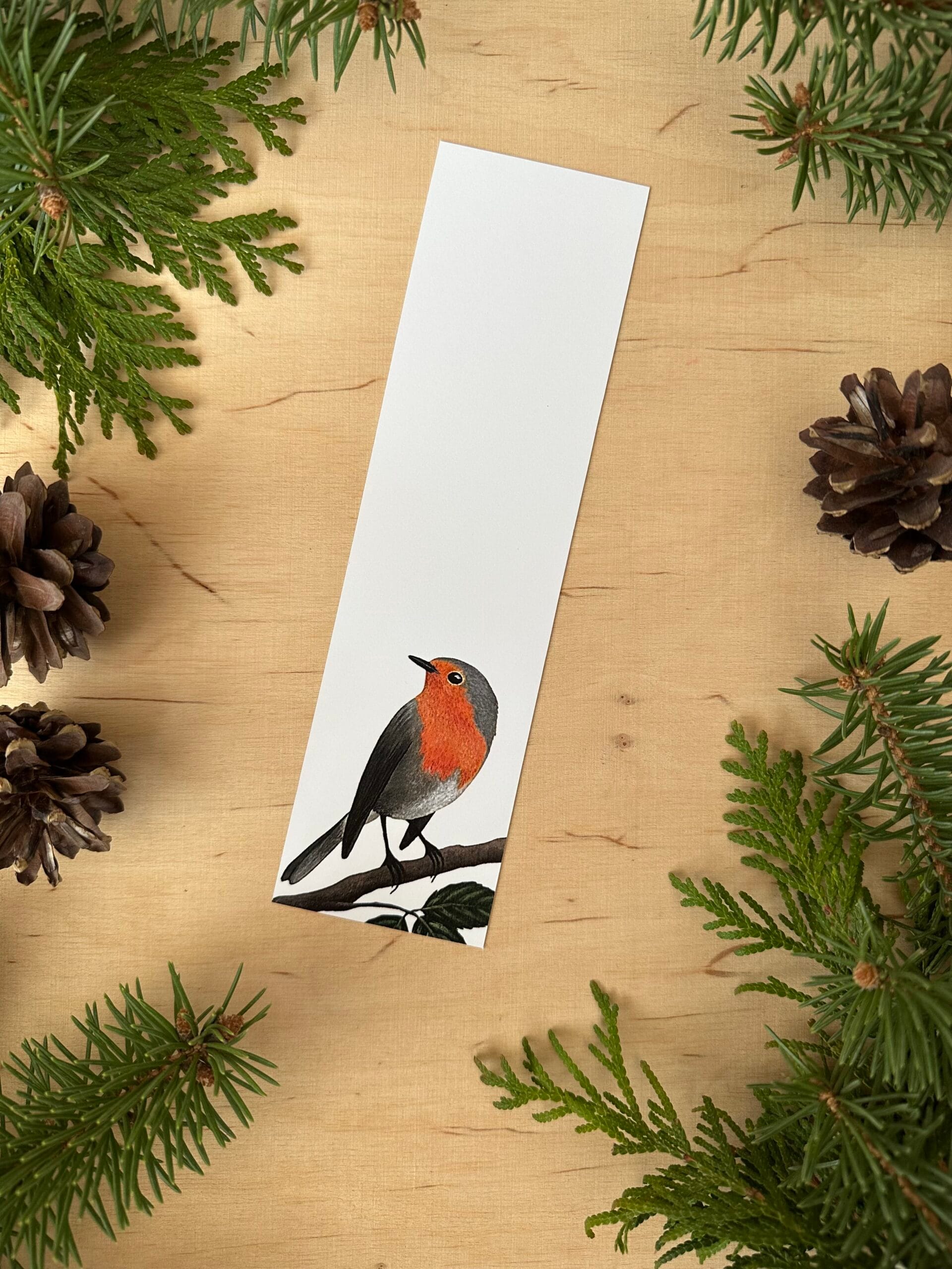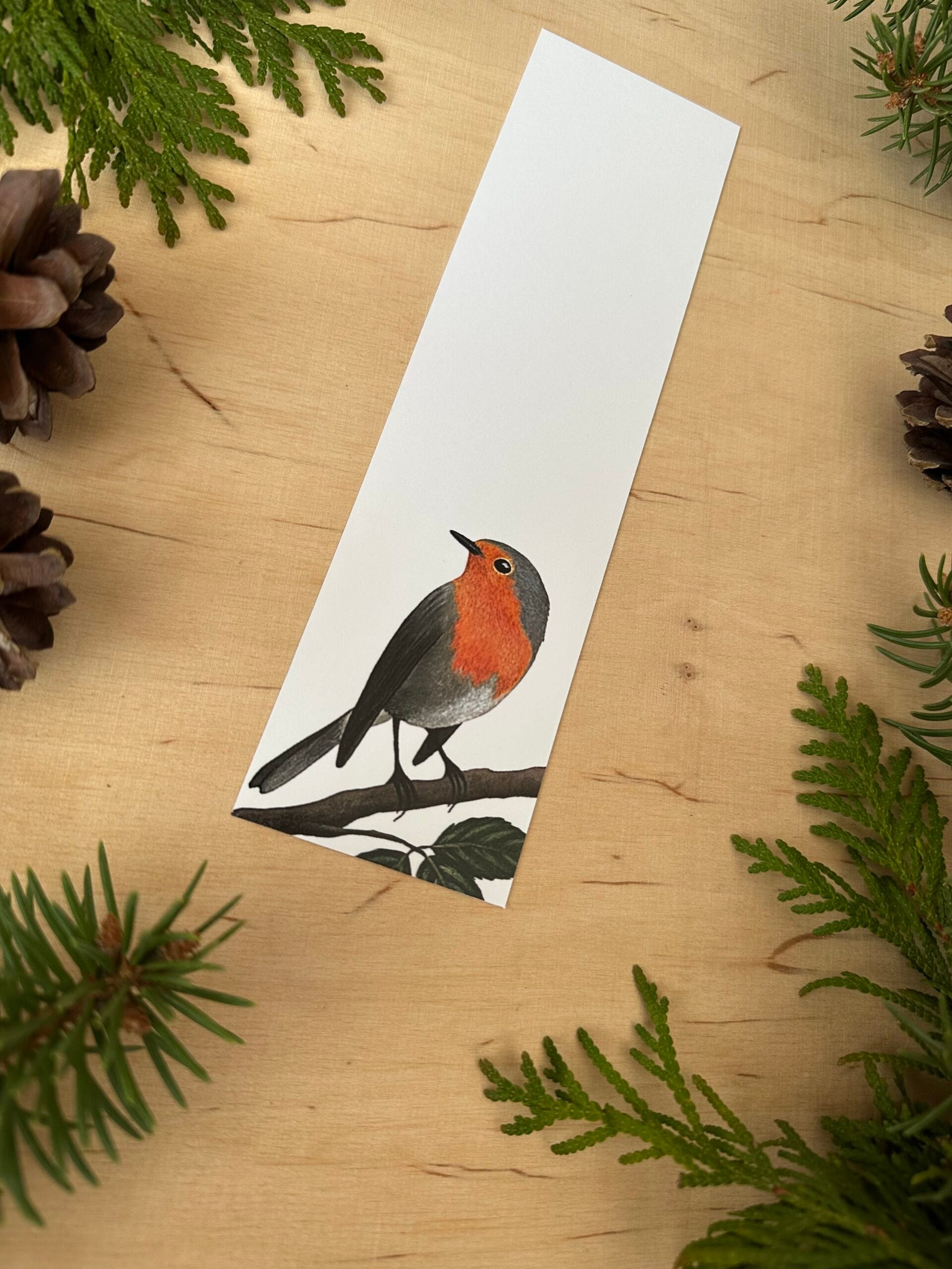 Zakładka z wydrukiem autorskiego malunku rudzika.