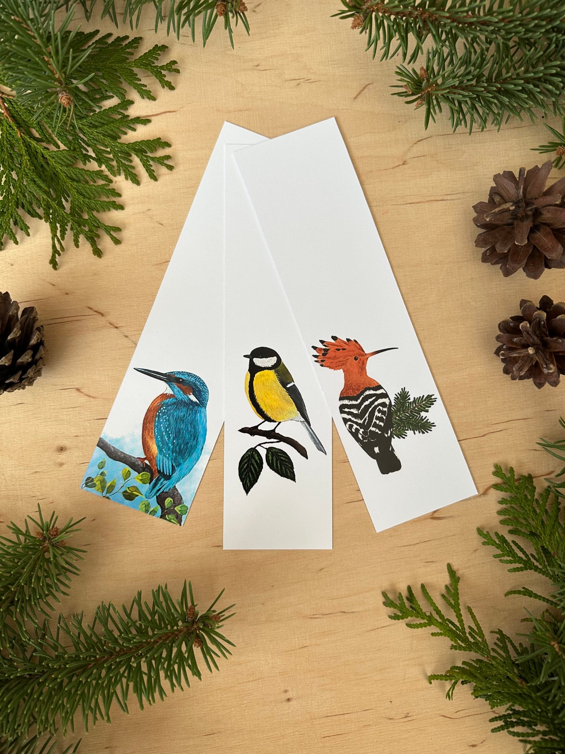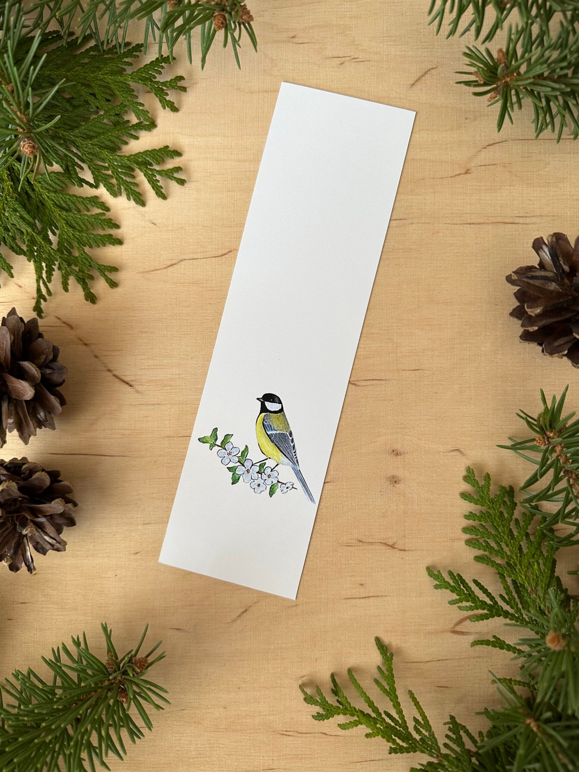 Zakładka z wydrukiem autorskiego rysunku sikorki bogatki.