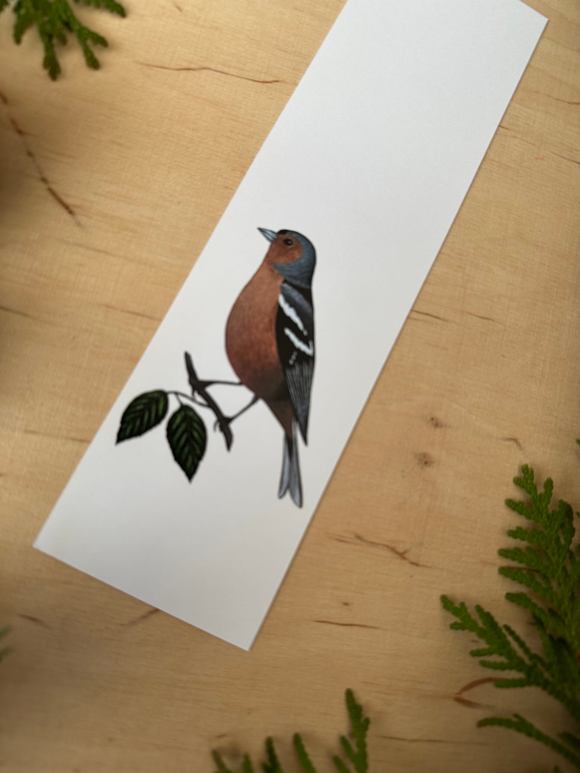 Zakładka z wydrukiem autorskiego malunku zięby.